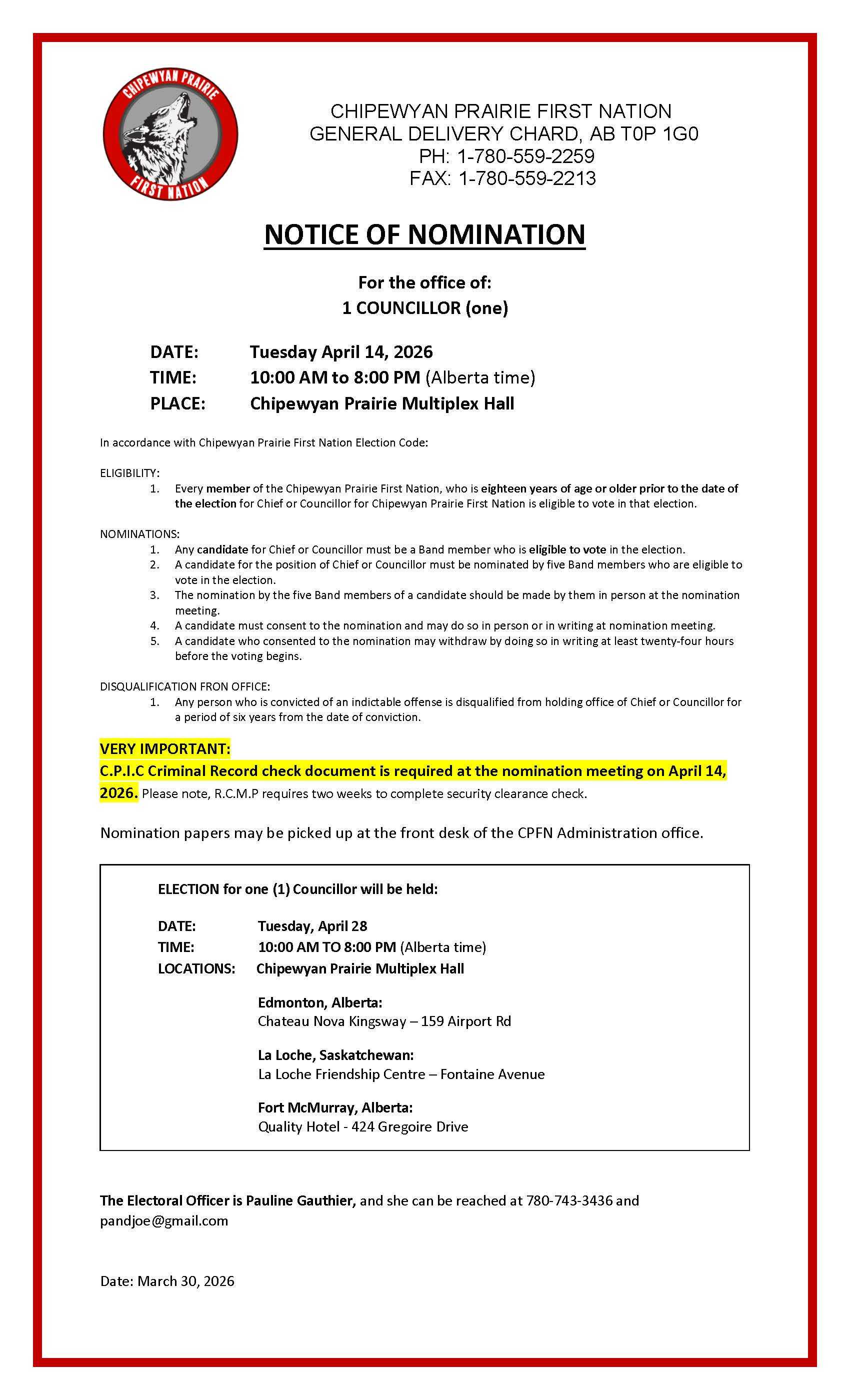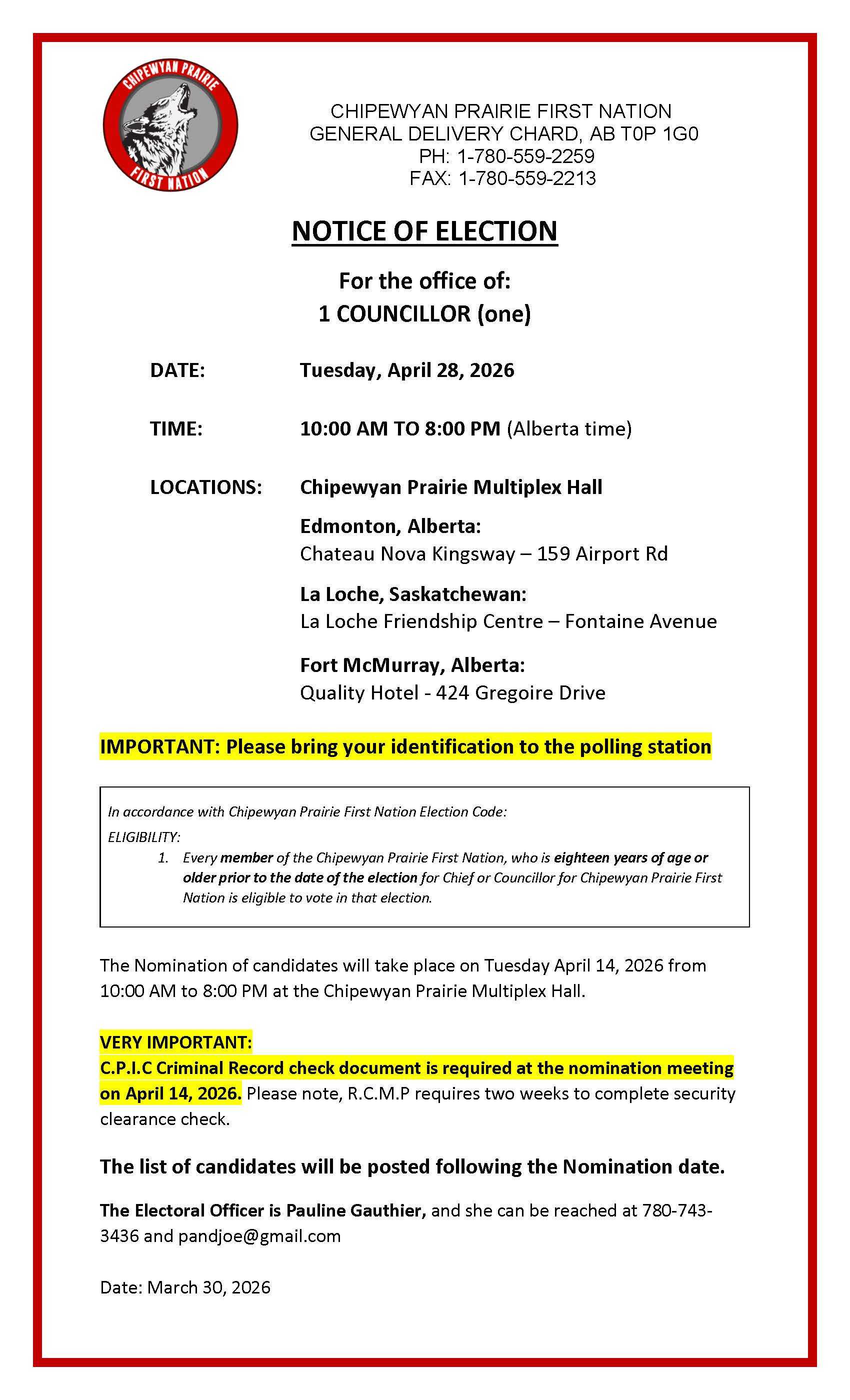 CHIPEWYAN PRAIRIE FIRST NATION
